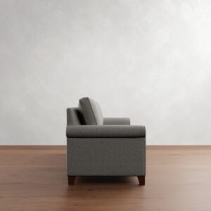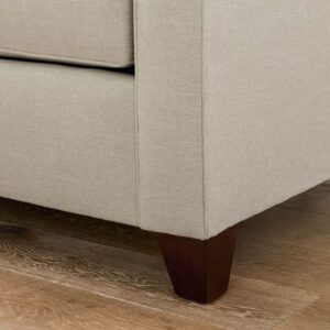 - Removable, square tapered, engineered wood legs are finished in Bourbon.