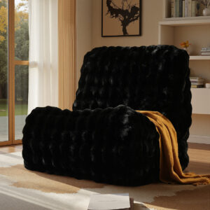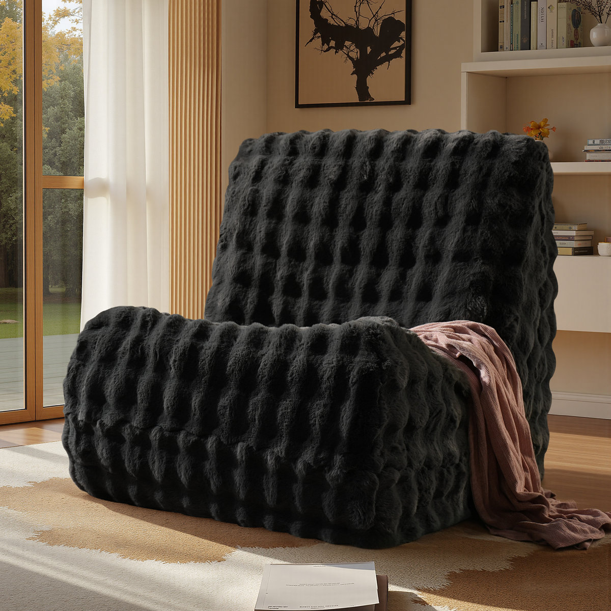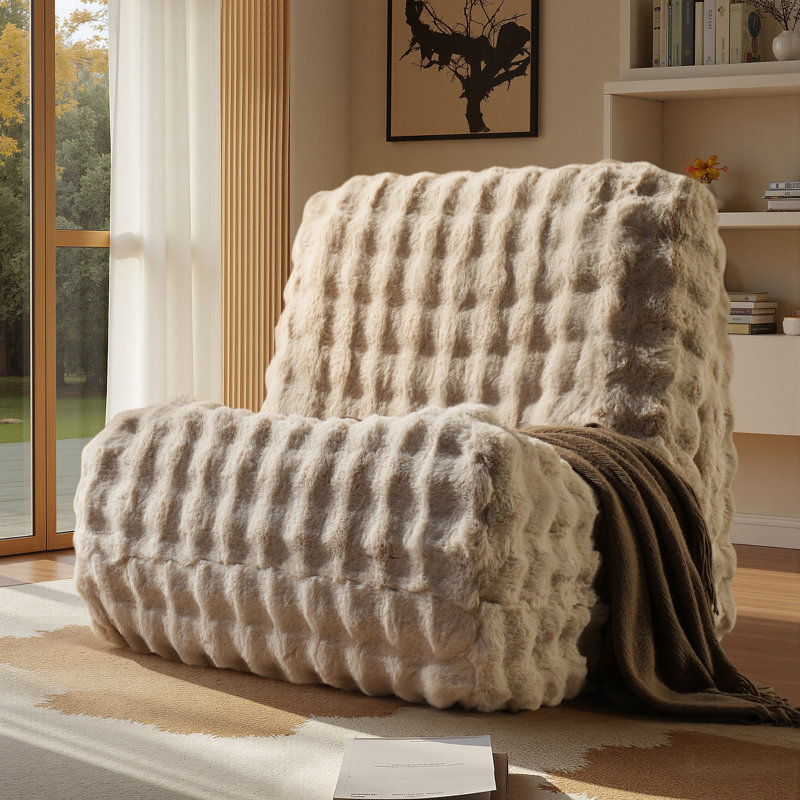 This armless lounge chair delivers a sculpted, low-profile silhouette with deep seating that encourages relaxation in your living room or den. It’s crafted with a dense foam frame and features plush faux fur upholstery for a soft, inviting texture. The tufted design adds subtle depth across the seat and back, while the enclosed base maintains a clean, modern look. Its compact, lightweight form makes it easy to move between rooms whenever you need extra seating. Plus, the scratch-resistant fabric helps protect the chair from everyday wear.