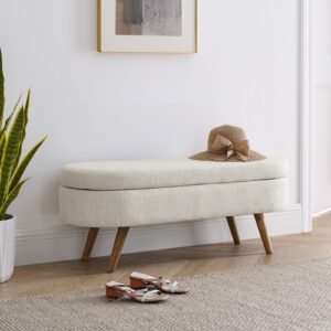 Ottoman Oval Storage Bench,Rubber Wood Legs, Beige(43.5x16x16)