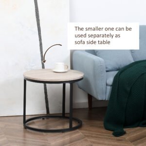 This industrial yet eye-catching coffee table set from HOMCOM has two separate round sofa tables of different sizes, making it a perfect accompaniment to various spaces and home styles. Instead of just coffee, tea, and snacks, you can give your home an artistic vibe by displaying photo frames, books, beautiful flowers, and other decorations on the desk. Let these two stylish and functional nested coffee tables accompany you to spend every leisure moment. Features: – Includes two coffee tables, a perfect addition to your home – They can be used separately or together or nested to save space when not in use – Adjustable foot pads keep the table stable on uneven grounds – Quality MDF board and metal frame for high stability and long durability – Assembly is required Specification: – Color: Grey – Material: MDF, Metal – Overall Dimensions: Dia 29.5″ x 19.25″H (large table), Dia 19.75″ x 17.75″H (small table) – Tabletop off the Ground: 18″ (large table), 16.25″ (small table) – Weight Capacity: 22 lbs. (each table) – Item Label: 839-150GY Package Includes: – 1 x Large Coffee Table – 1 x Small Coffee Table – 1 x Manual This industrial yet eye-catching coffee table set from HOMCOM has two separate round sofa tables of different sizes, making it a perfect accompaniment to various spaces and home styles. Features: – Includes two coffee tables, a perfect addition to your home – They can be used separately or together or nested to save space when not in use – Adjustable foot pads keep the table stable on uneven grounds – Quality MDF board and metal frame for high stability and long durability – Assembly is required Specification: – Color: Rustic Brown – Material: MDF, Metal – Overall Dimensions: Dia 29.5″ x 19.25″H (large table), Dia 19.75″ x 17.75″H (small table) – Tabletop off the Ground: 18″ (large table), 16.25″ (small table) – Weight Capacity: 22 lbs. (each table) – Item Label: 839-150BN Package Includes: – 1 x Large Coffee Table – 1 x Small Coffee Table – 1 x Manual.