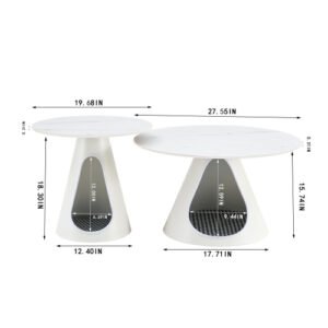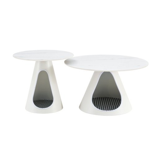 - In conclusion, this set of 2 coffee round tables with marble look tops and steel bases, complete with integrated cat beds, is a must-have for pet owners looking to combine style, functionality, and comfort in one seamless package.