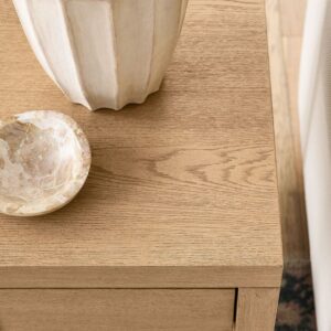 - Expertly crafted of mahogany wood, engineered wood, MDF, mahogany veneers and oak veneers with a Seadrift finish.
